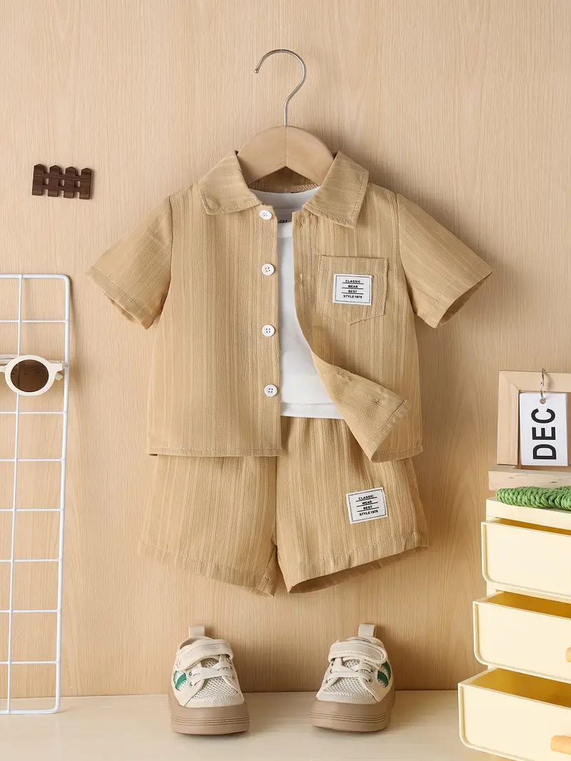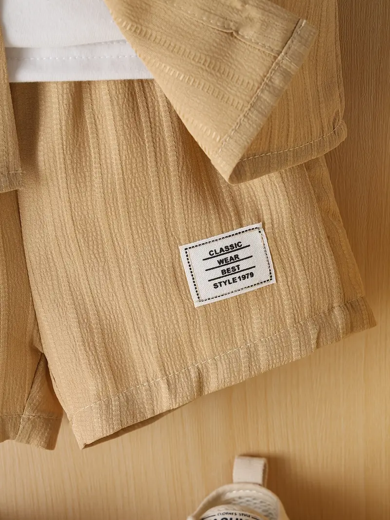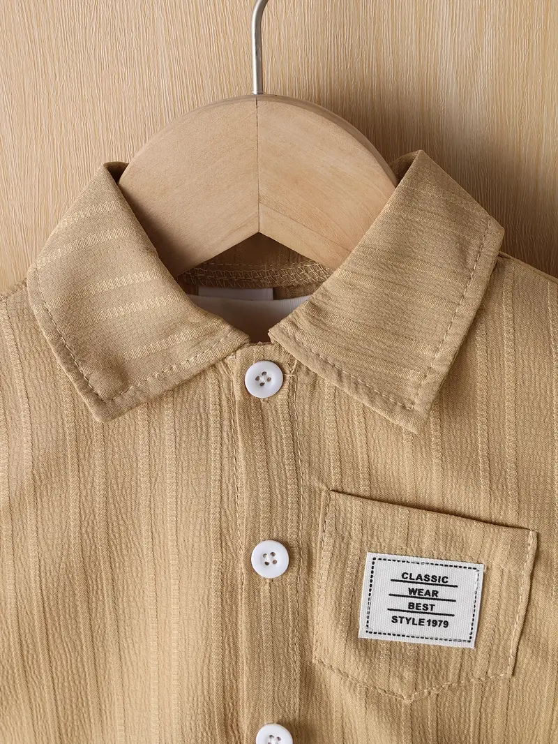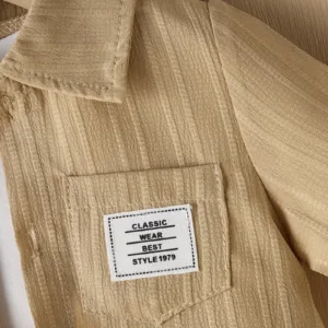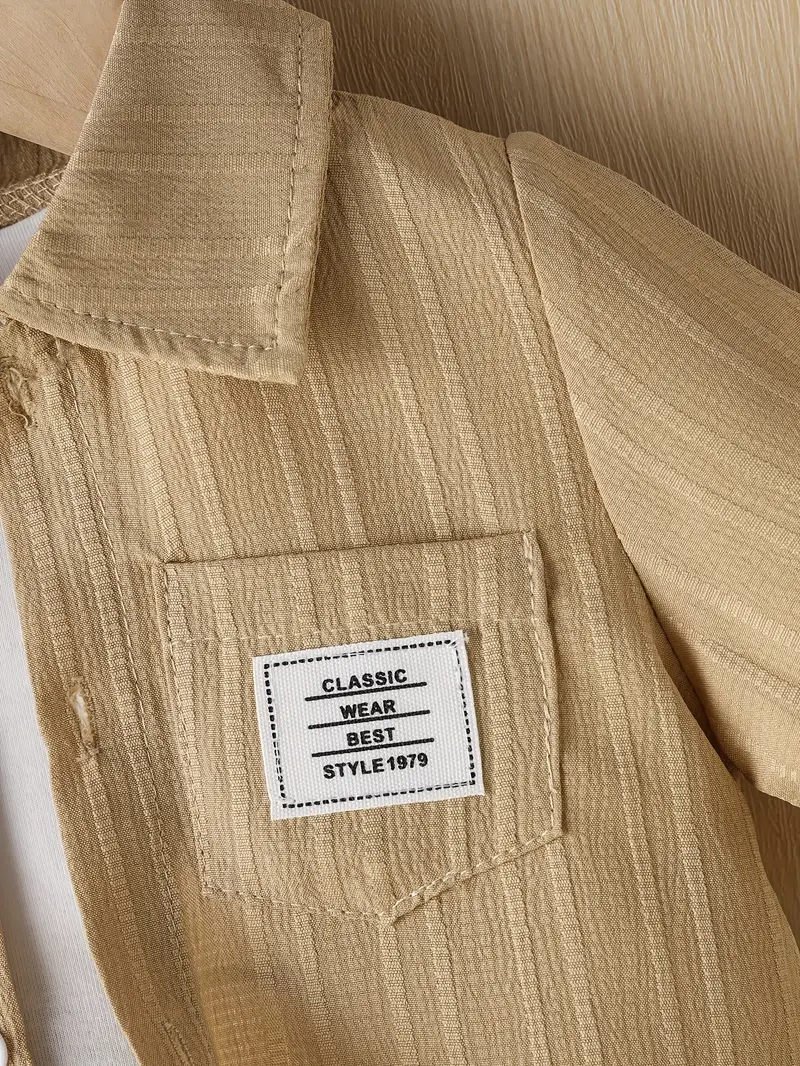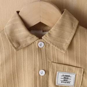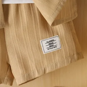 triped Short-Sleeved Pocket Shirt & Casual Shorts, 100% Polyester, Cute Button-Up Style for Casual Attire, Perfect for Outdoor