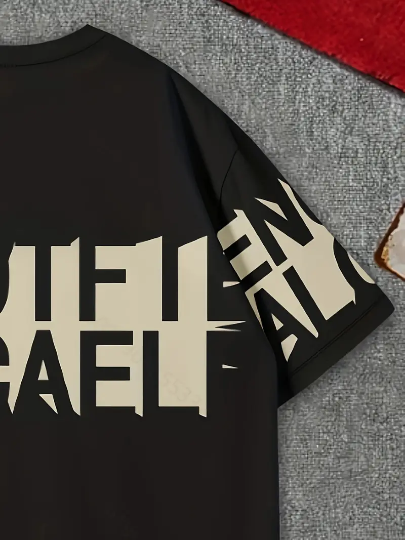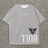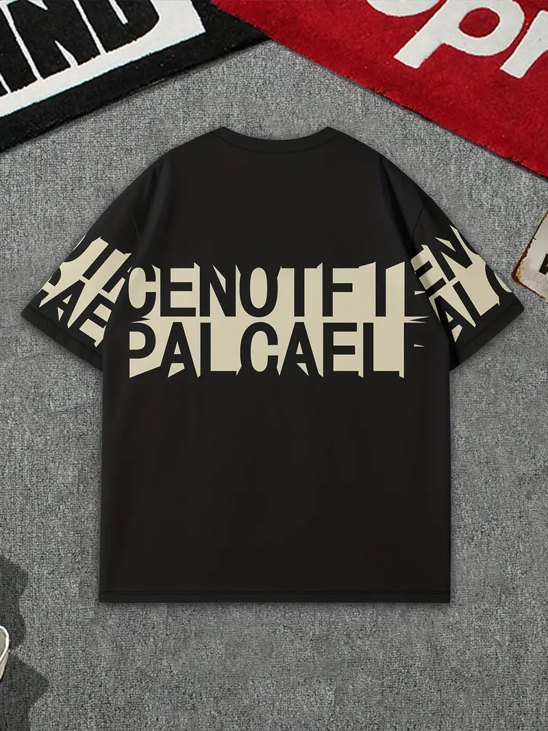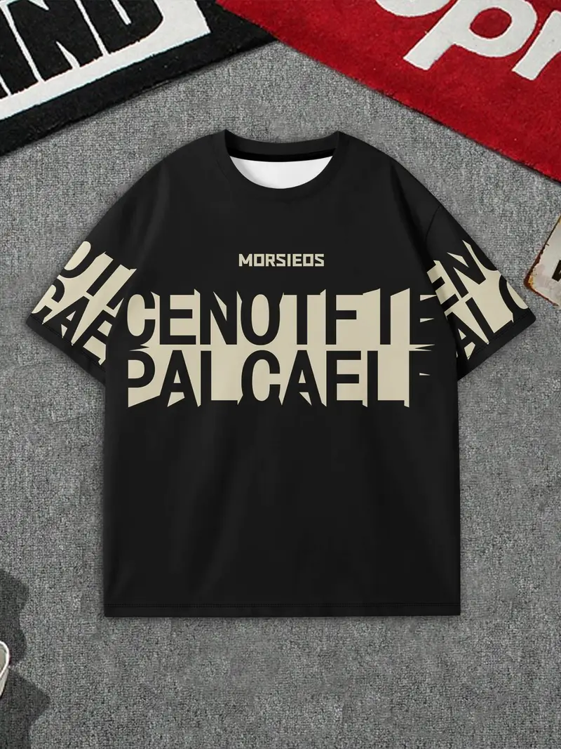 Men’s Casual Crew Neck T-Shirt, 100% Polyester Knit Fabric, Geometric Bull Print, Loose Fit Drop Shoulder Short Sleeve Tee for Indoor & Outdoor Use