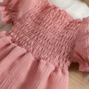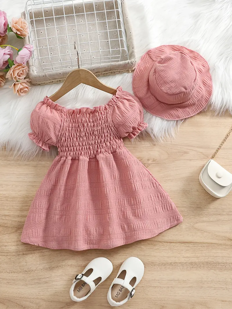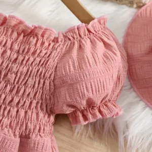Be the first to review “New Summer Bubble Sleeve Plain Color Dress with Cute Hat”